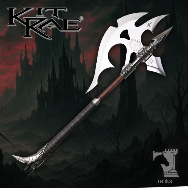 Originally introduced in the early years of Kit Rae’s legendary series, the Black Legion War Axe quickly became a favourite among collectors of fantasy weaponry. This reissue celebrates that legacy, faithfully recreating the original design while showcasing the dark artistry and intricate detail that have defined Rae’s work for decades. Each piece is officially licensed and includes a custom art print and a certificate of authenticity, solidifying its place in the *Swords of the Ancients* saga.