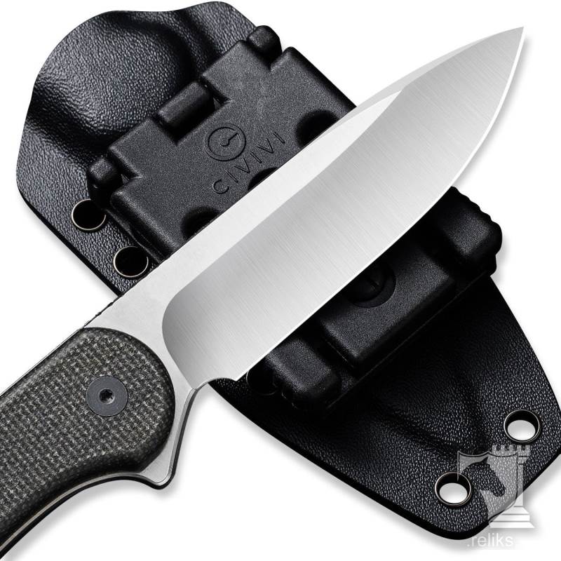The CIVIVI Fixed Blade Elementum Tactical Knife is purpose built for camping and bushcraft, offering a reliable fixed blade design that thrives in outdoor environments. Compact enough for belt or pack carry yet substantial in hand, this knife is ideal for campsite tasks such as food prep, light wood processing, cord cutting, and general utility around camp. The dark green micarta handle provides a natural, outdoor focused aesthetic while delivering excellent grip and control in changing weather conditions.