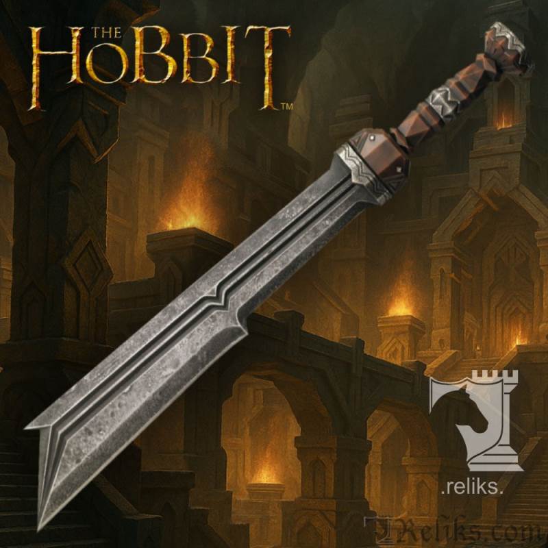 Fíli’s sword was designed to embody the strength and durability of Dwarven steel, with broad lines, heavy weight, and a straightforward practicality that mirrored his character. Seen throughout the film, it became a symbol of loyalty and courage as Fíli fought beside his brother Kíli and the rest of the Company. For fans of Peter Jackson’s trilogy, this replica captures the look and feel of the weapon exactly as it appeared on screen.