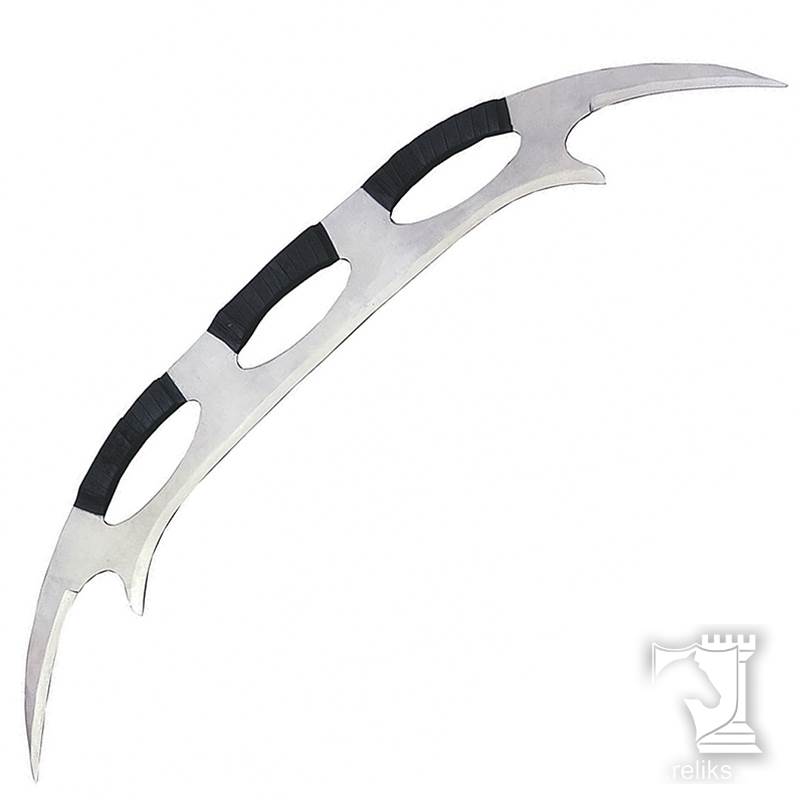 Designed as a respectful homage to some of science fiction’s most recognizable curved blades, the Warrior Curve Sword celebrates the creativity and imagination that shaped the genre. Although not an official replica or licensed design, its sweeping arcs and dual-grip construction clearly reflect the artistry of alien-inspired weapon forms. This fantasy piece stands as a bridge between collector craftsmanship and storytelling wonder.