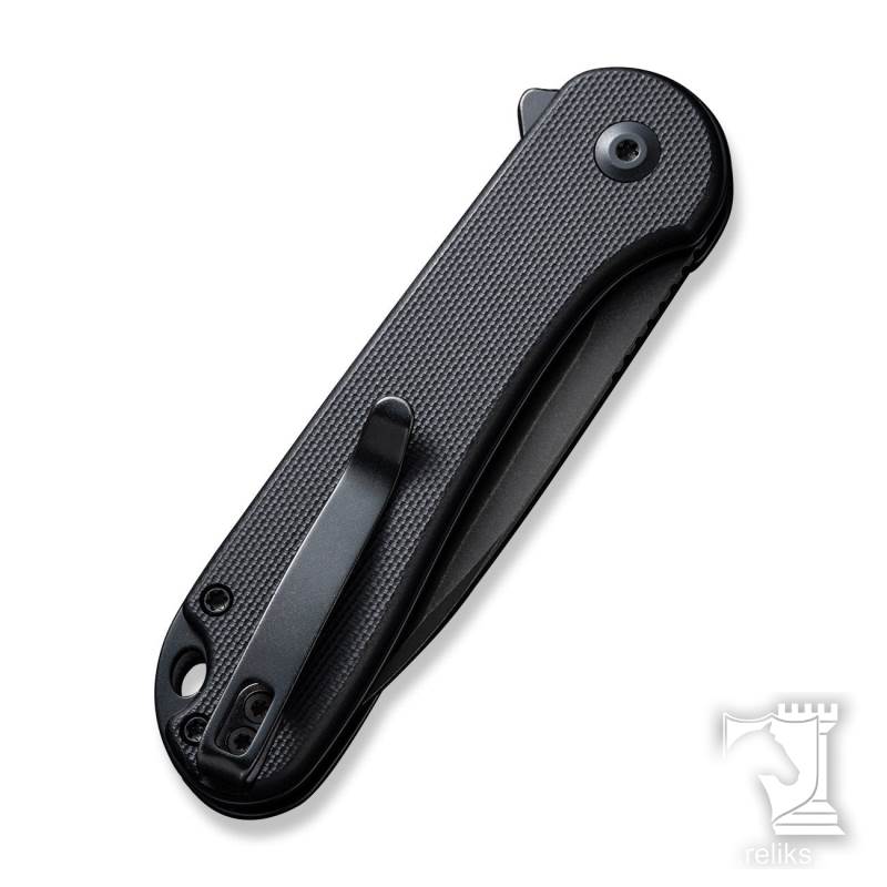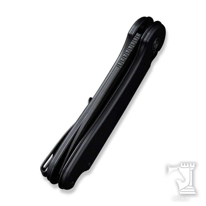 The blade is made from Nitro V stainless steel, heat treated for a strong balance of edge retention, toughness, and corrosion resistance suited to regular use. A black stonewashed finish helps hide wear and adds a subdued, work ready look. The G10 handle scales provide a secure grip with a comfortable thickness, paired with black finished stainless steel liners and hardware for a cohesive appearance. A caged ceramic ball bearing pivot delivers smooth flipper deployment, while the spring tuned button lock offers reliable tension that helps prevent accidental release while remaining easy to disengage when intended.