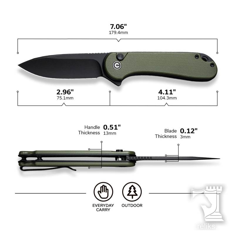 The CIVIVI Button Lock Elementum II in OD green is designed for everyday carry users who value controlled action, dependable materials, and a compact profile that disappears in the pocket. Its 2.96 inch blade strikes an ideal balance between cutting ability and carry comfort, while the flipper and button lock combination delivers smooth, confident one handed operation. The muted OD green G10 adds a practical, outdoors inspired look that fits just as well in urban EDC rotation as it does in a more utility focused setup.