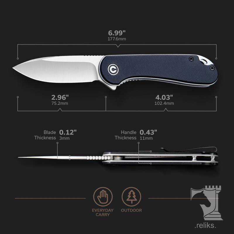 The CIVIVI Elementum Flipper Knife is a standout choice for everyday carry users who value clean design, reliable performance, and effortless usability. With its streamlined profile, lightweight build, and smooth flipper action, the Elementum feels purpose built for daily tasks without unnecessary bulk. The black G10 handle offers confident grip and understated style, making this knife equally at home in a pocket, pack, or work environment. Balanced, practical, and refined, it is easy to see why the Elementum has become one of CIVIVI’s most trusted EDC designs.