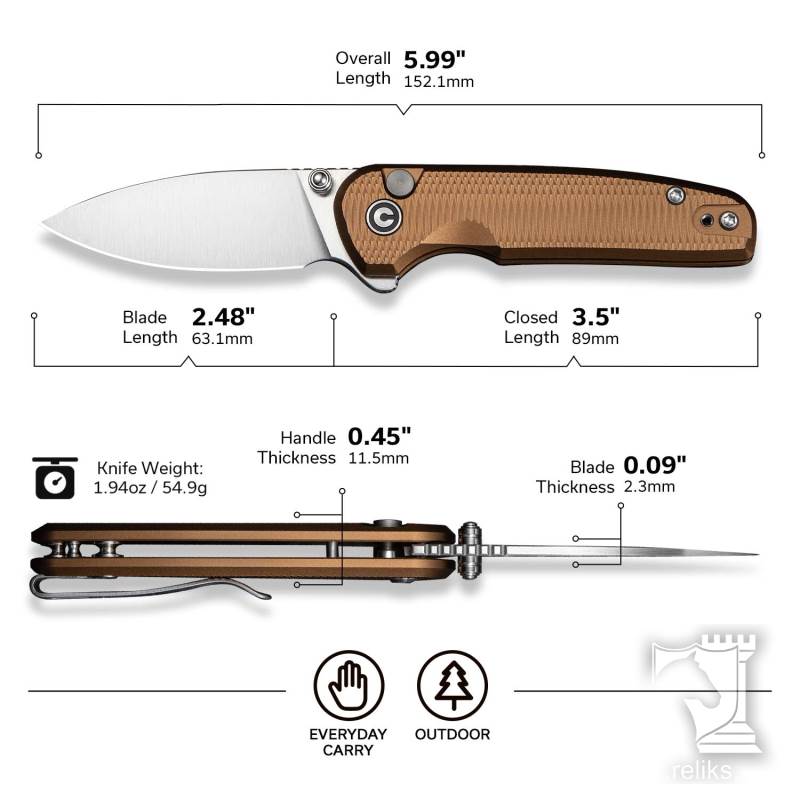 The CIVIVI Mini Shakan Button Lock Knife in coyote brown is a compact everyday carry built for users who value clean design, reliable performance, and subtle tactical character. Its ripple patterned aluminum handle offers a secure, comfortable grip while keeping the knife exceptionally lightweight. Designed for easy daily carry, the Mini Shakan deploys smoothly using either the flipper tab or thumb studs, delivering fast, controlled access whenever you need it.