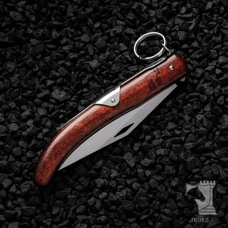 Built for people who value function over flash, the Okapi 907E pocket knife is a tool with real character. Slim, lightweight, and unmistakably iconic, this knife has earned its reputation through decades of hard, practical use. From everyday carry to outdoor utility, the 907E delivers dependable performance with a design that feels instantly familiar in the hand. The distinctive ratchet sound, the moon and stars insignia, and the warm feel of the wooden handle all signal a knife made to be used, not babied.