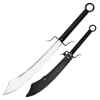 There are few swords in the world that are more intimidating or more effective than the two handed Chinese War Sword. For centuries it has been wielded by both peasant and soldiers alike with devastating results. Its huge wide blade will shear through armor as if it were butter, not to mention mere flesh and bone. There is nothing clumsy or awkward about this sword. Its 14 ½" cord wrapped grip, "S" shaped guard, and steel ring shaped pommel all work in concert to make it a well balanced weapon that’s unbelievably fast and agile. It comes combat sharp and is protected by stunning, heavy leather scabbard of exceptional workmanship. Order your sword with confidence as we are convinced you will be more than delighted with the sword’s fit, finish, material, and above all, performance!