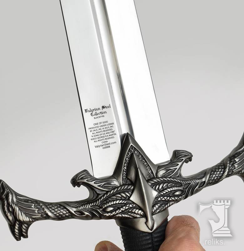 The Blackfyre Book Edition Sword represents absolute authority in Westeros. First carried by Aegon the Conqueror when he departed Dragonstone to claim the Seven Kingdoms, Blackfyre became more than an ancestral weapon. It emerged as a defining symbol of House Targaryen and the right to rule. This officially licensed Valyrian Steel replica captures the presence, scale, and historical weight of the blade that helped shape an empire.
