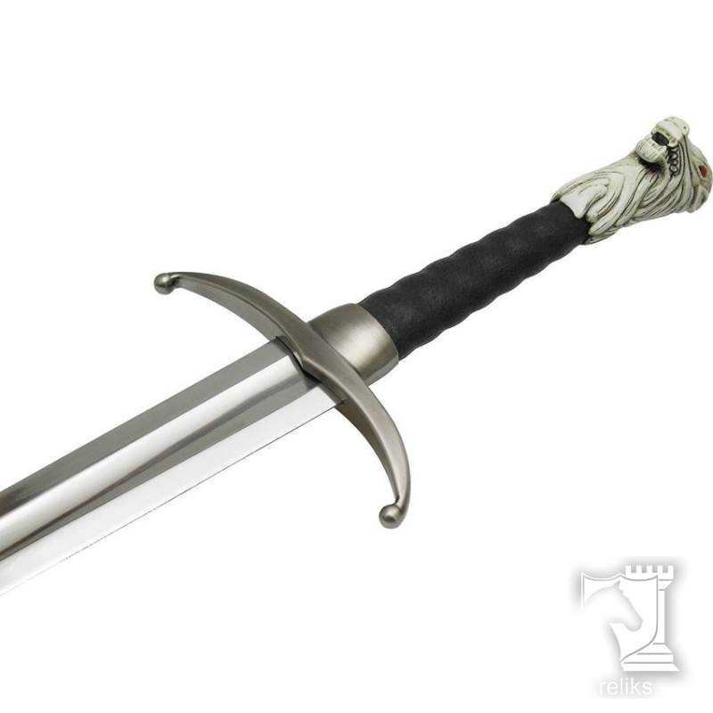 Originally forged for House Mormont, Longclaw was gifted to Jon Snow by Lord Commander Jeor Mormont after Jon saved his life from a wight. Re-fitted with a wolf’s head pommel to honor House Stark, the sword became a symbol of Jon’s identity and destiny—from the icy wilderness beyond the Wall to the great battles that shaped the fate of Westeros. This replica honors the sword as it appeared during Jon’s time among the Night’s Watch, before the world learned the truth of who he was meant to be.