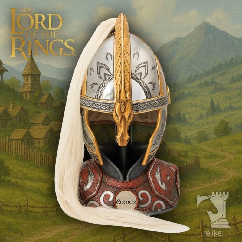 This officially licensed collectible is an exact reproduction of the filming prop created by Weta Workshop for The Lord of the Rings films. Crafted of reinforced polyresin and genuine leather, it features carefully molded details and screen-accurate coloring. Each helm comes ready for proud display, making it an essential addition to any Lord of the Rings collection and a tribute to one of Rohan’s greatest champions.