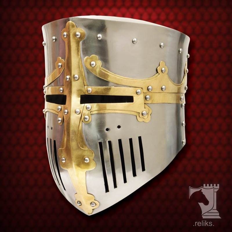 It is a medieval great helm replica, representing the enclosed helmets used by knights during the 13th century.