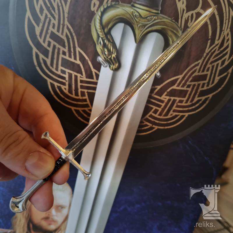Bring the return of the king to your display shelf with this Anduril sword scaled prop replica, a compact collectible that captures one of the most famous swords in fantasy. Created for fans of Aragorn and the epic journey of Middle earth, this officially licensed piece delivers the look of the reforged blade in a format that is easy to display, collect, and gift. For collectors who want a striking Lord of the Rings replica without committing to a full size sword, this miniature version offers impressive detail in a smaller and more affordable presentation.