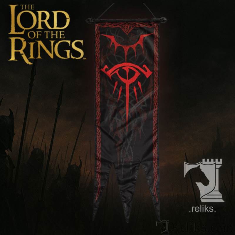 In Tolkien’s legendarium, the Eye of Sauron is more than a mark—it is the embodiment of his will and his unrelenting search for the One Ring. Banners bearing this symbol rallied the legions of orcs and men who bent their knees to the Dark Lord, flying high from the towers of Barad-dûr to the battlefields of Gondor. This replica lets fans of the saga bring home that dark and iconic imagery, a striking contrast to the banners of Gondor and Rohan.