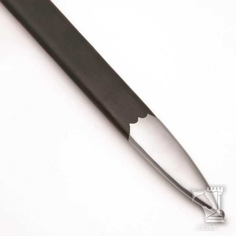 This Heritage Series edition is upgraded with improved distal taper, giving the blade excellent balance and responsive handling. The grip is formed using an authentic wet-wrap technique, where cord is applied to damp leather and removed once dry, leaving attractive dimpling that enhances both grip and historical accuracy. The scabbard now features a proper wooden core covered in deep green leather and finished with an ornate metal locket and chape. Hand forged and delivered factory sharp, this sword is built for cutting performance as well as historical appreciation.