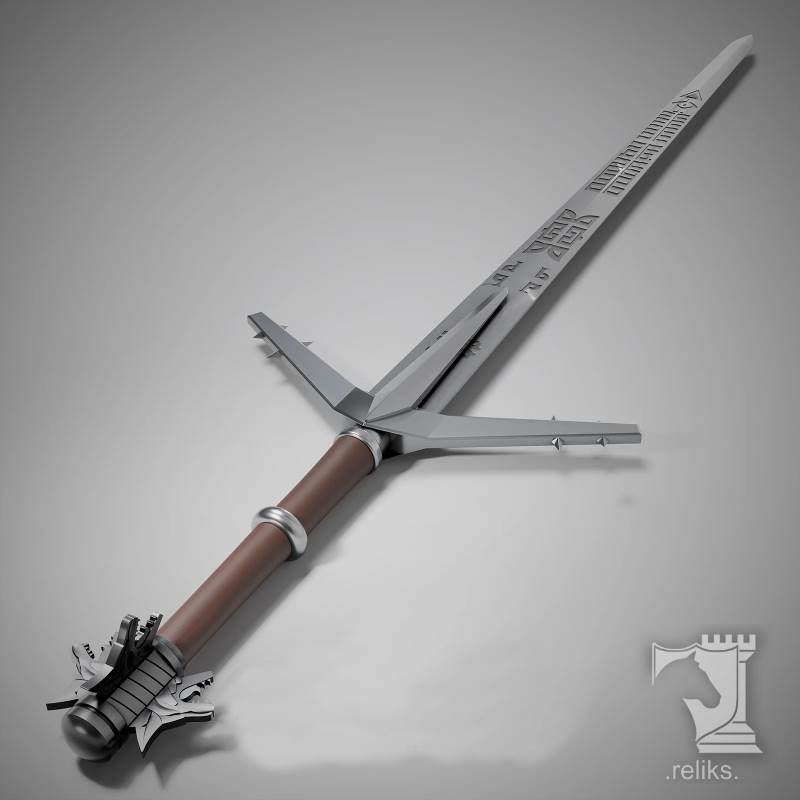 It was created using official in game artwork and 3D models, giving it strong visual accuracy to the Aerondight seen in The Witcher 3: Wild Hunt.