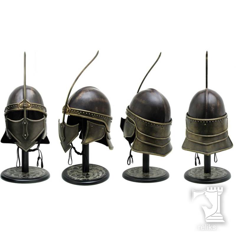 This limited-edition display helm is crafted from leather and steel, with an adjustable visor that mirrors the functional design of the screen-used prop. Only 2,500 pieces were produced, each individually serialized and packaged with a certificate of authenticity. A wooden display stand featuring the Targaryen sigil is included, making the helm a striking tribute to the Dragon Queen’s disciplined army. Intended only for display, it is a premium piece built for collectors of high-end Game of Thrones replicas.